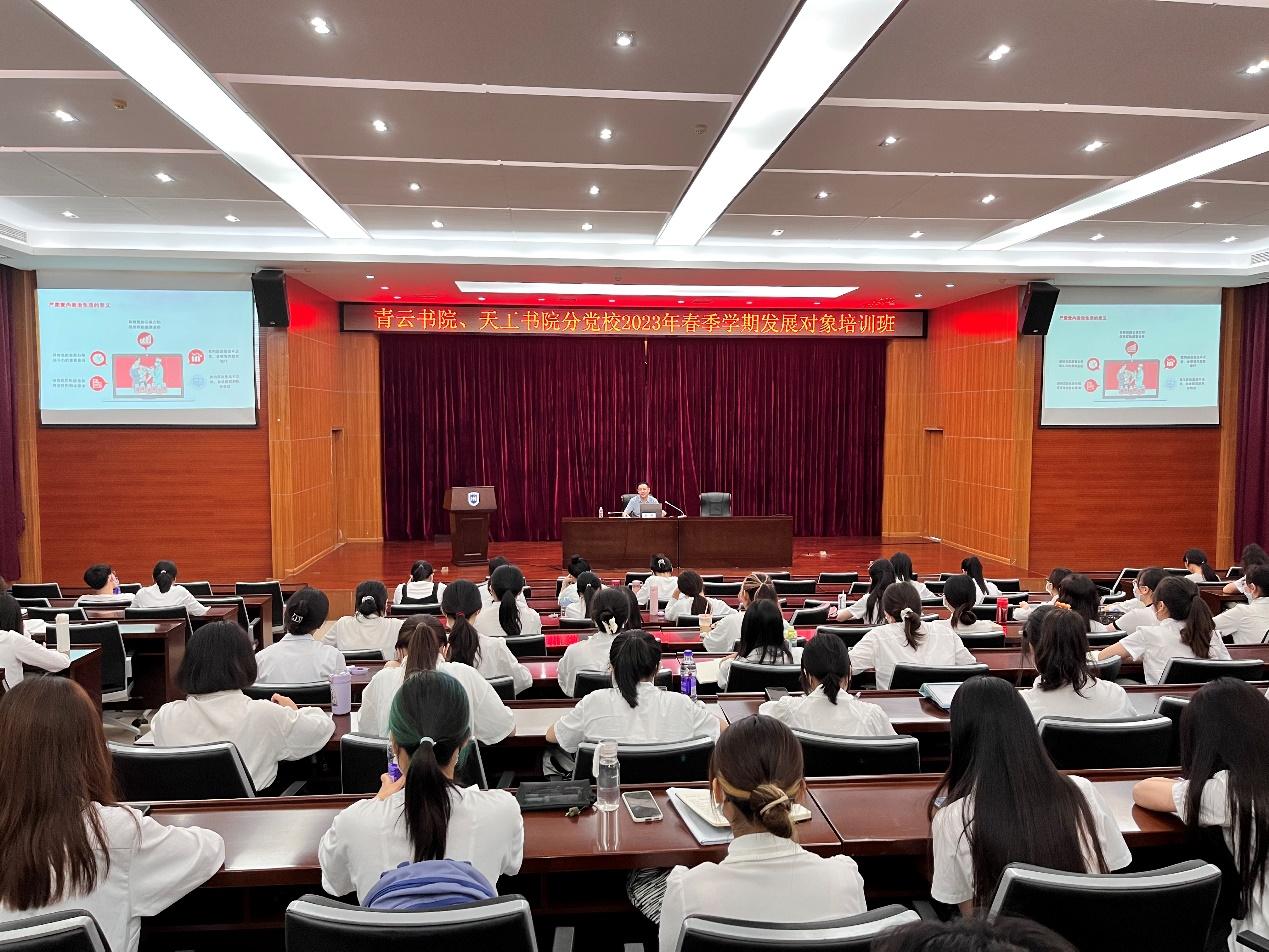 根据学习贯彻习近平新时代中国特色社会主义思想主题教育相关工作部署,5月13日上午,9193官网党委书记易振以《学思想,强党性,严肃党内政治生活》为题讲授专题党课。书院党支部书记、党员代表、发展对象200余人参加党课学习。