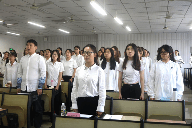 仪式在庄严的国歌声中拉开帷幕,杨静茹同学代表全体学员作表态发言,郑重承诺将遵守党课培训纪律,认真学习理论知识,加深理解和领会,强化理想信念和使命担当。