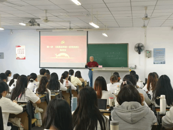 开班仪式结束后,yl9193永利官网关工委副主任、特邀党建组织员、《yl9193永利官网学报》原主编陈传汉副教授为学员们带来培训第一讲——《我是这样做一名党员的》。在课上,他指出,作为一名共产党员,要深入学习党的理论知识,多读书、读好书,从经典中汲取智慧,提高思想水平。英雄模范是时代的丰碑、国家的脊梁。陈老师提出,要学习英雄模范身上忠诚、执着、朴实等优秀品格,把他们的精神转化为奋进前行的力量。
